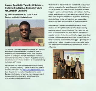 Iwell graduated with a degree in Physiotherapy from Evelyn Hone College. He is currently employed as a tutor, physical development coach and Student Volunteering Coordinator at Our Moon Education in Lusaka.
